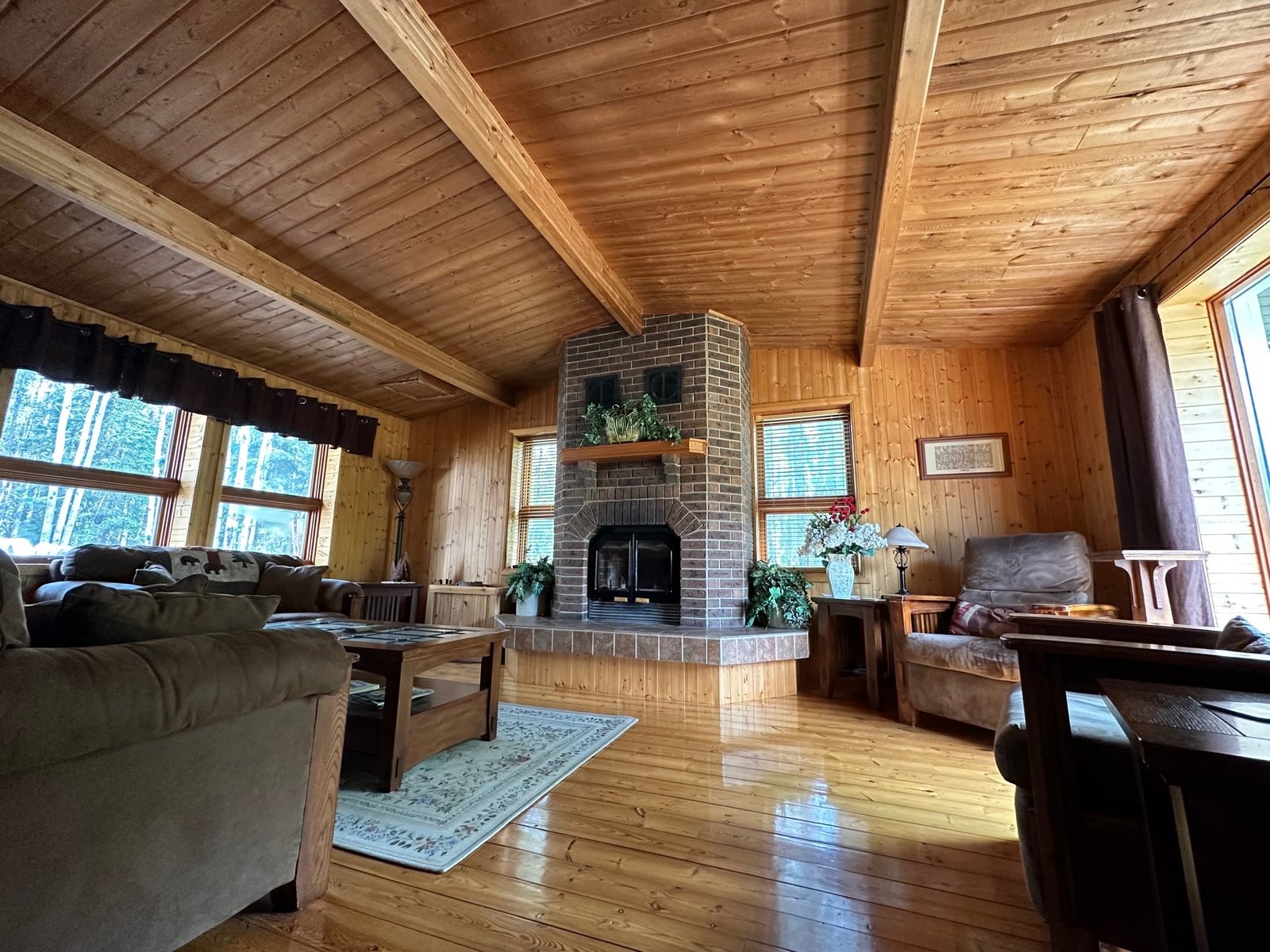 Into The Wild Outfitters offers a spacious, executive style home that is deep among the pines. This 2300 square foot two storey home is situated 5 minutes from the town of Hudson Bay, Saskatchewan. It is exactly what we call a Hunter’s Haven. This 5 bedroom/4-bathroom non-smoking home is magnificently finished with wood interior and includes individual rooms with double size beds, WIFI, Satellite TV, laundry, a coffee and tea station, and you will have access to the main sitting area where there is a wood fireplace or you can head down to the lounge/game room to watch TV, or play some cards. This area is equipped with a wet bar kitchenette and has the 24-hour snack bar available for your convenience.
